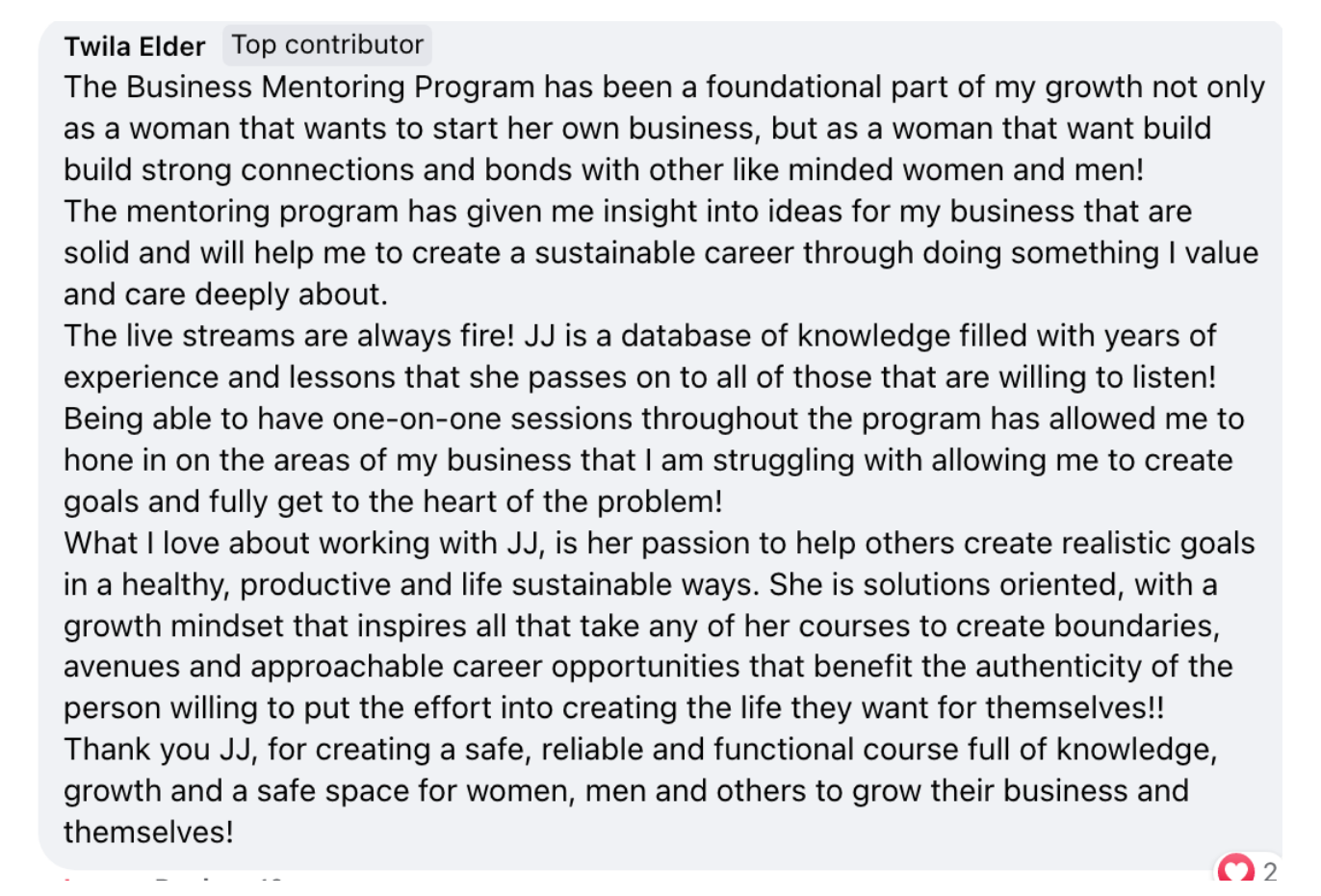 Amazing Training from The Purpose Accelerator Business Mentoring Course. The course that is responsible for an increase of women successfully starting businesses in 2022. Sharing valuable business building foundations, start up and growth frameworks, helping you overcome buying and sales objections with pricing  and positioning strategies. Teaching ways to make money, overcome limiting money mindset beliefs.