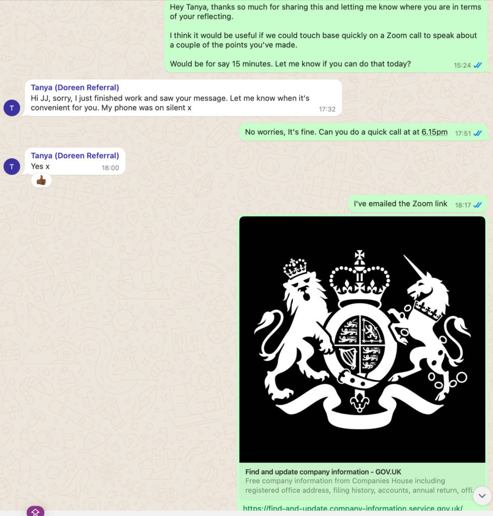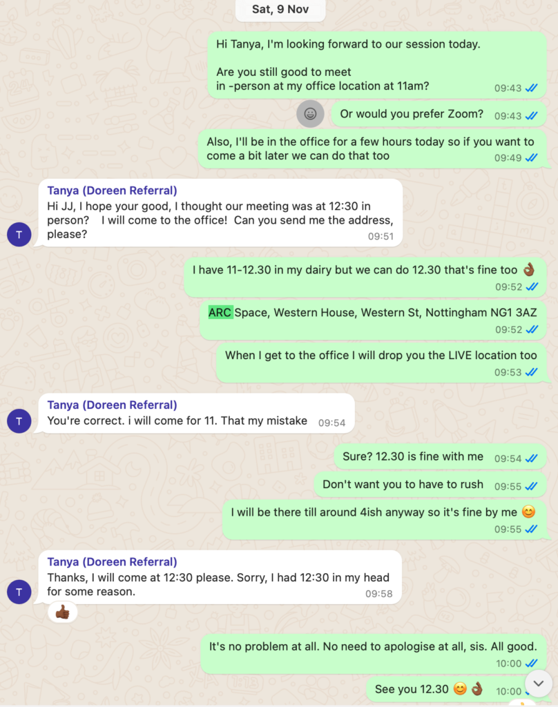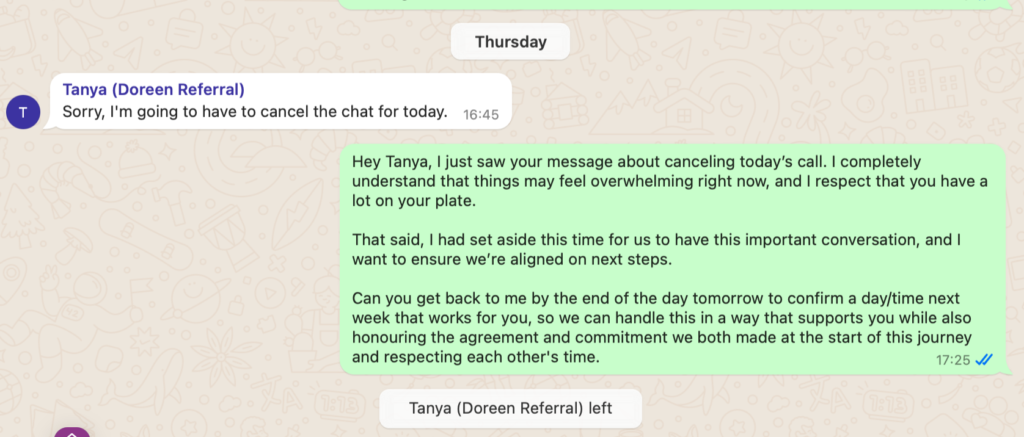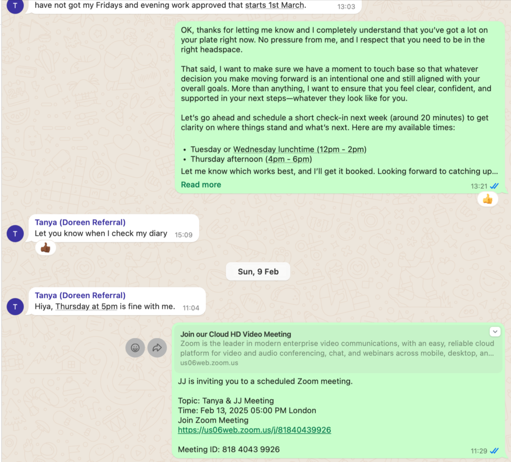 ***Services Period: First 1:1 session scheduled for 23rd October 2024 final session scheduled for 8th February but due to Tanya cancelling sessions and changing dates, at time of dispute, we still had 2 sessions left before the program is ‘officially’ completed***